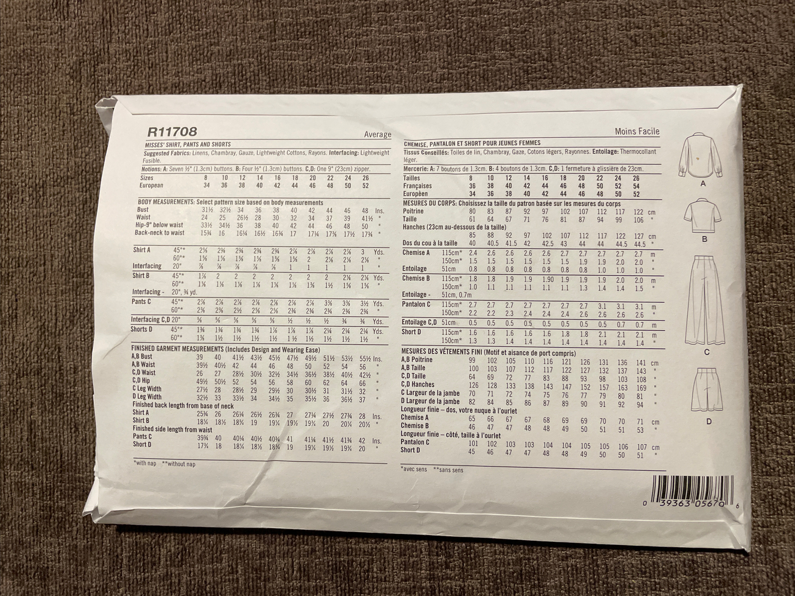 Simplicity Pattern R11708 Loose Fitting Pants Shirt Plus Shorts Misses 16 26 Ebay